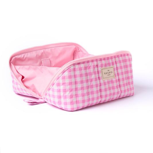 Marshmallow Flat Lay Makeup Box Bag - Pink Gingham