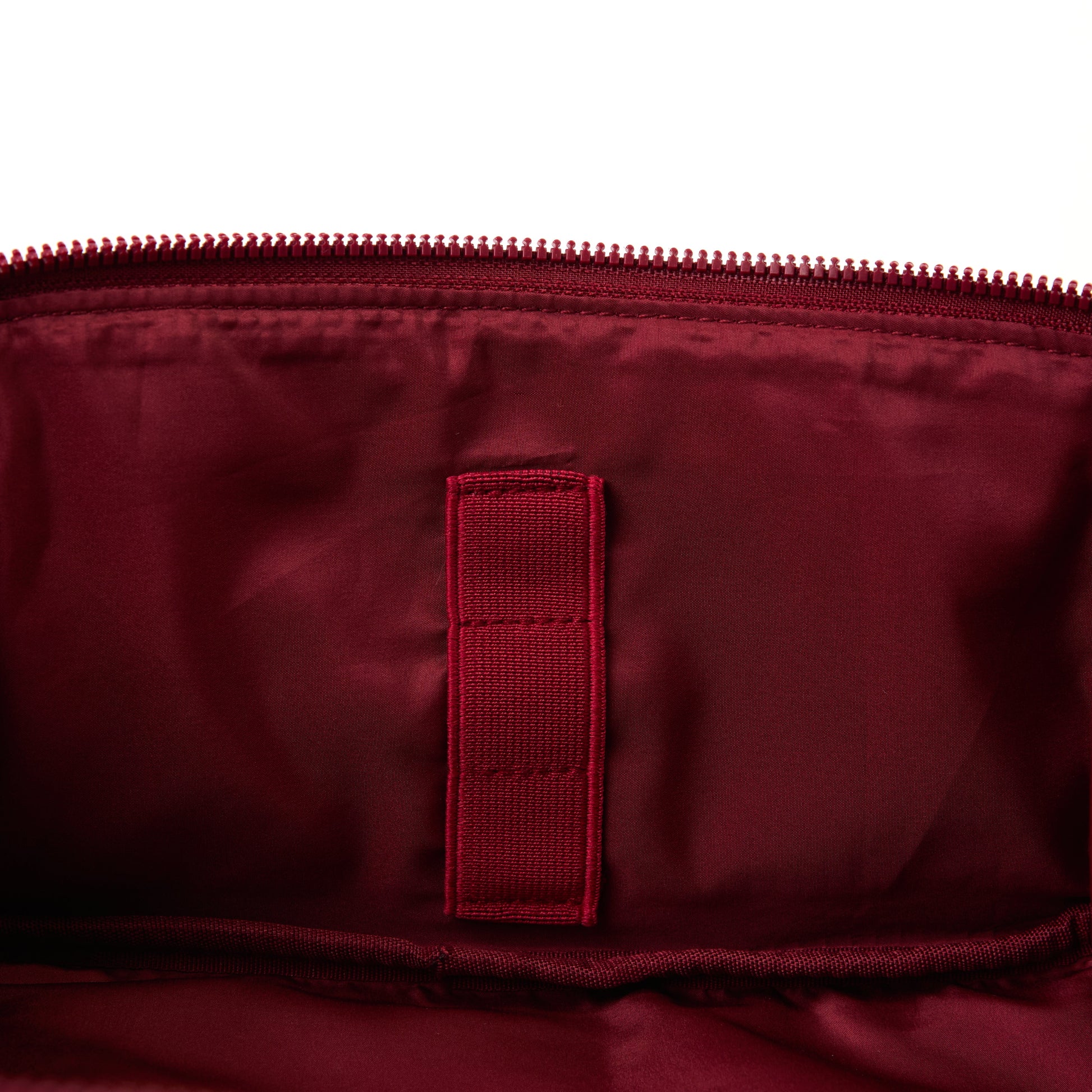 Rich burgundy velvet, detailed with delicate embroidered florals for a textured, elevated finish.