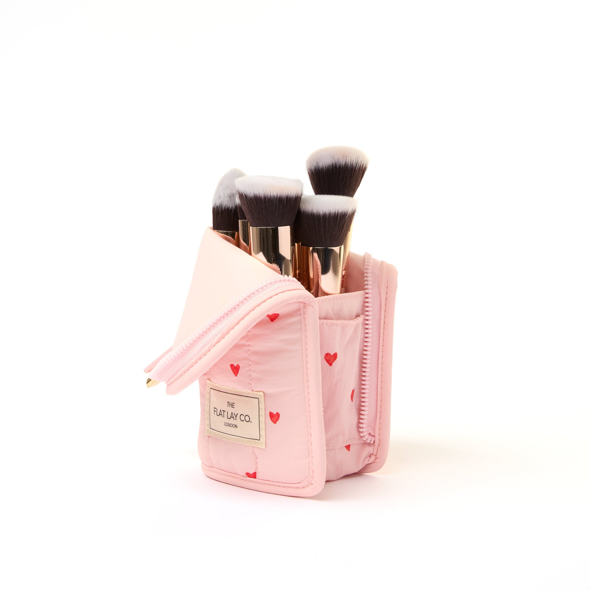 Padded Standing Makeup Brush Case - Sweet Pink Hearts