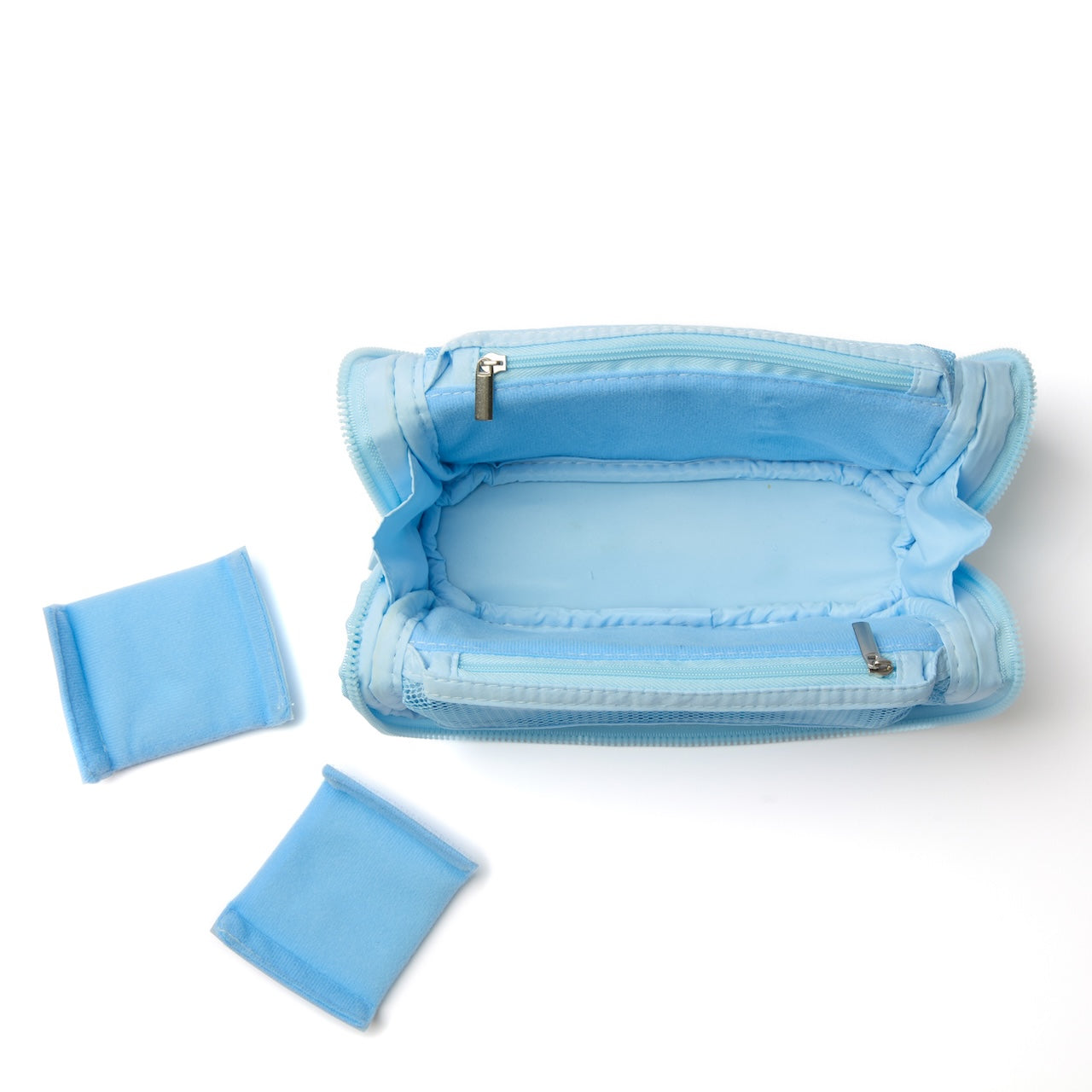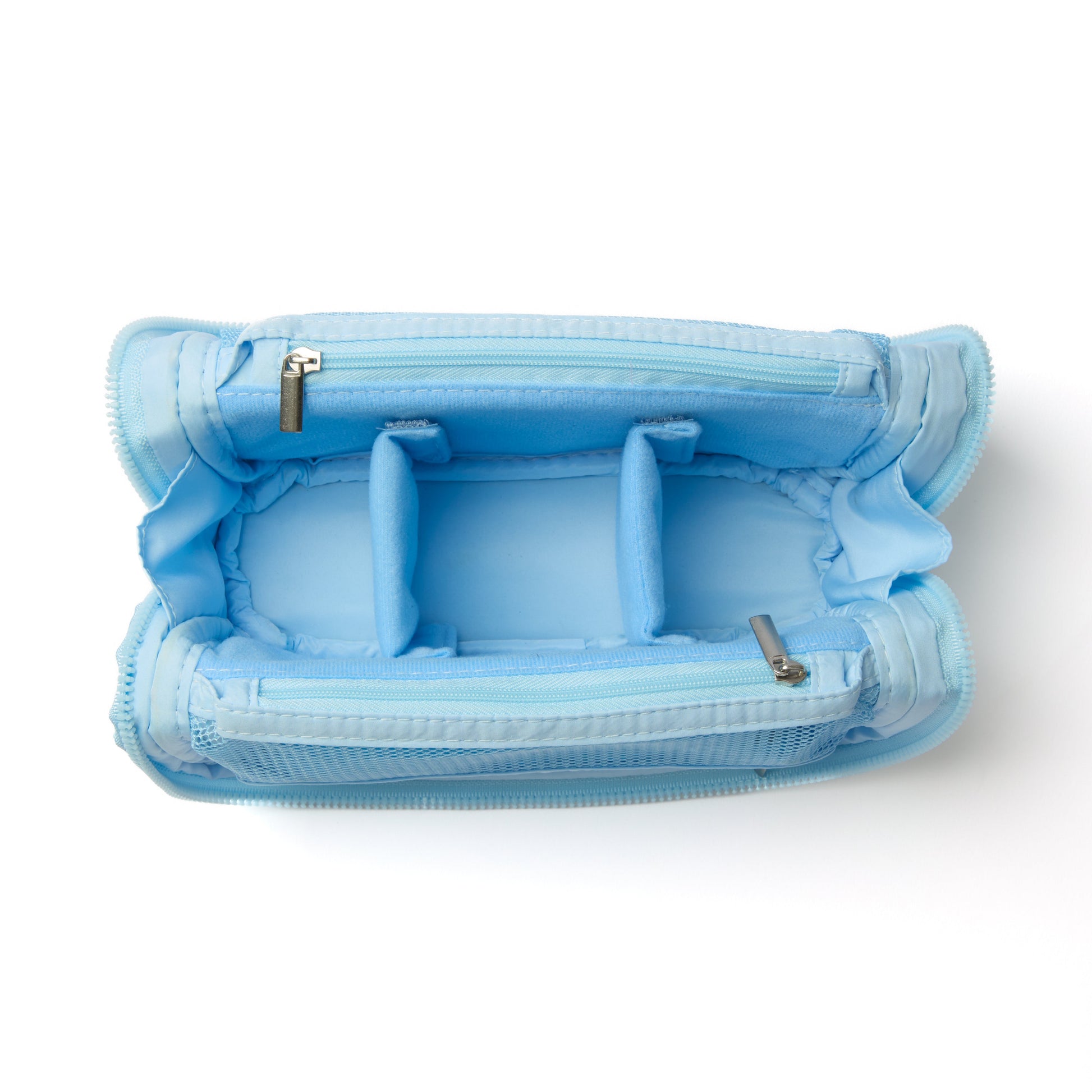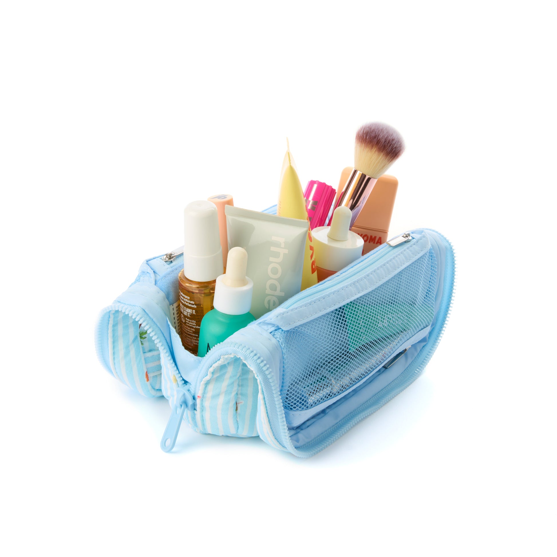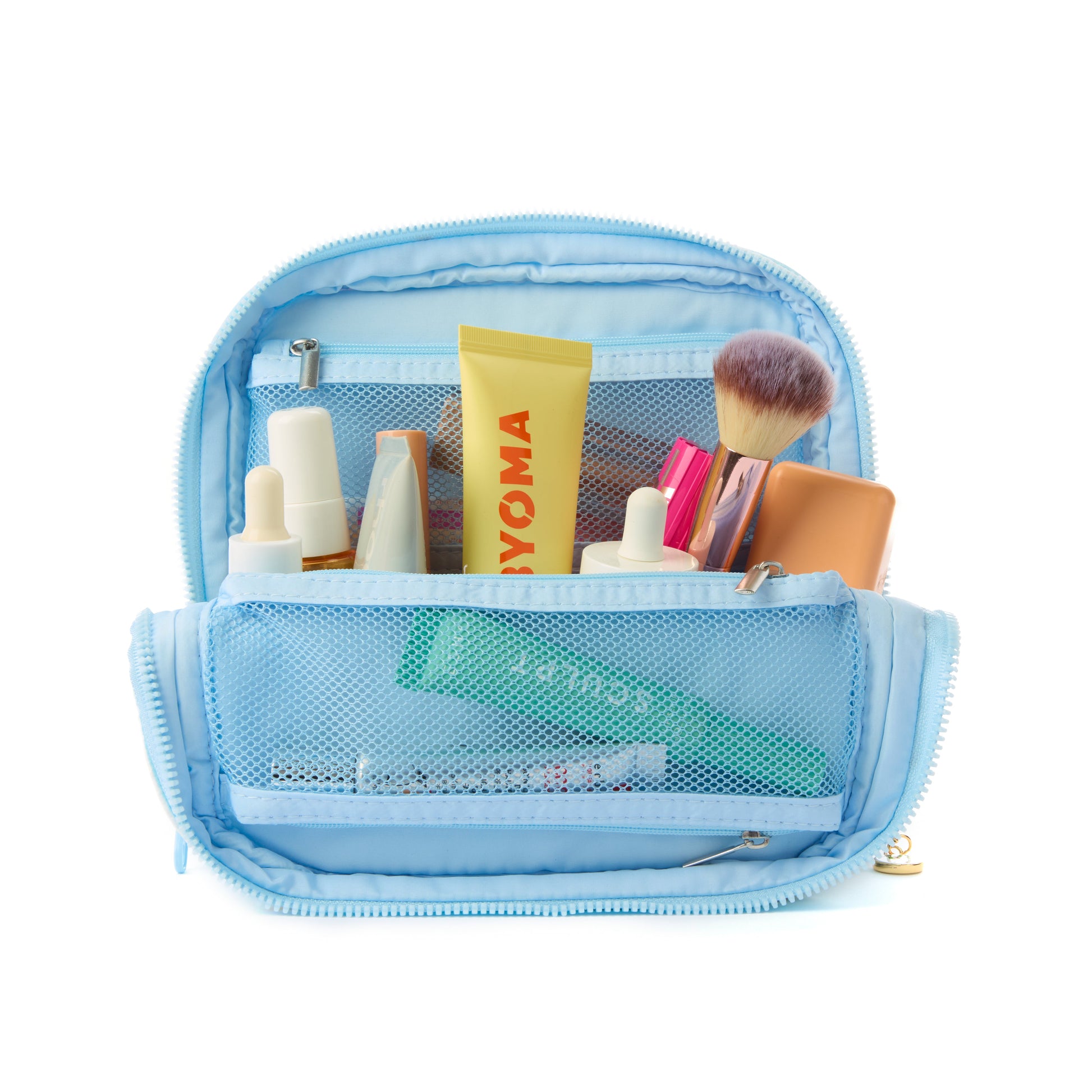 Moveable dividers fit your routine (not the other way around), while mesh pockets keep smaller essentials neatly contained. When you’re finished, zip it closed to protect your products and instantly clear your counter.